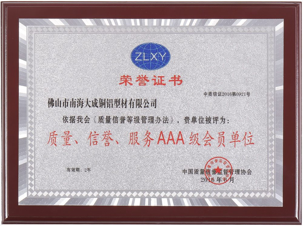 質(zhì)量信譽(yù)管理協(xié)會(huì)榮譽(yù)證書