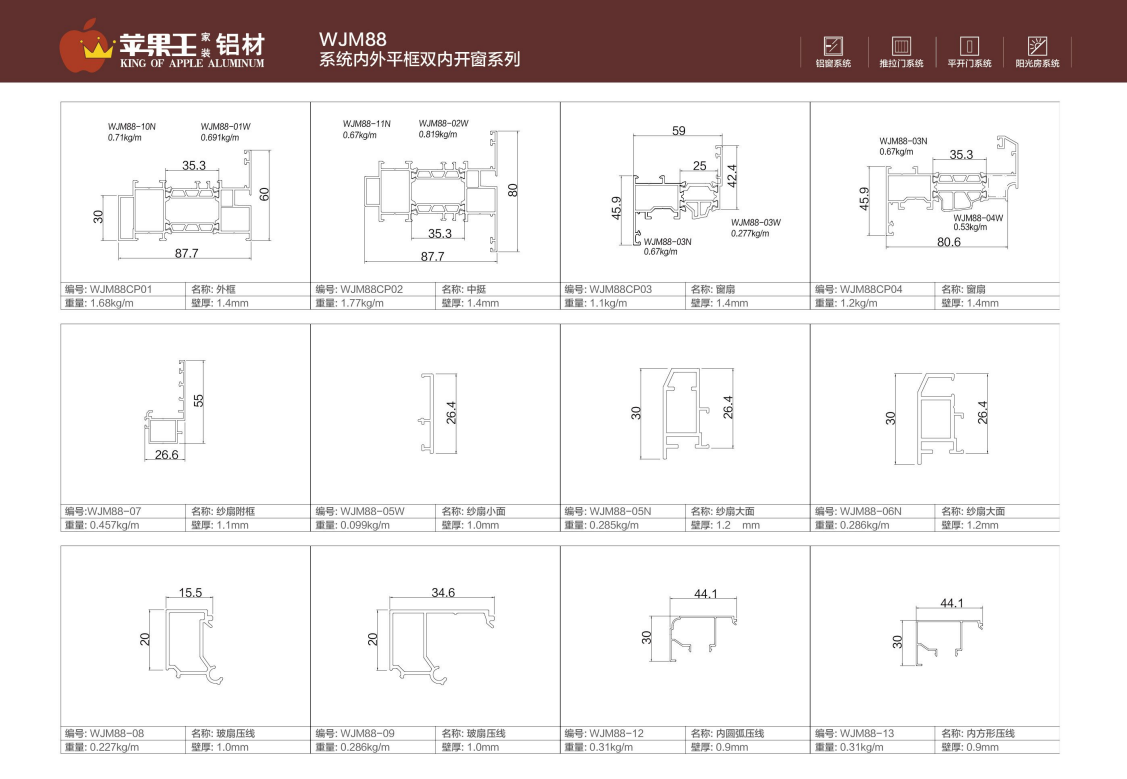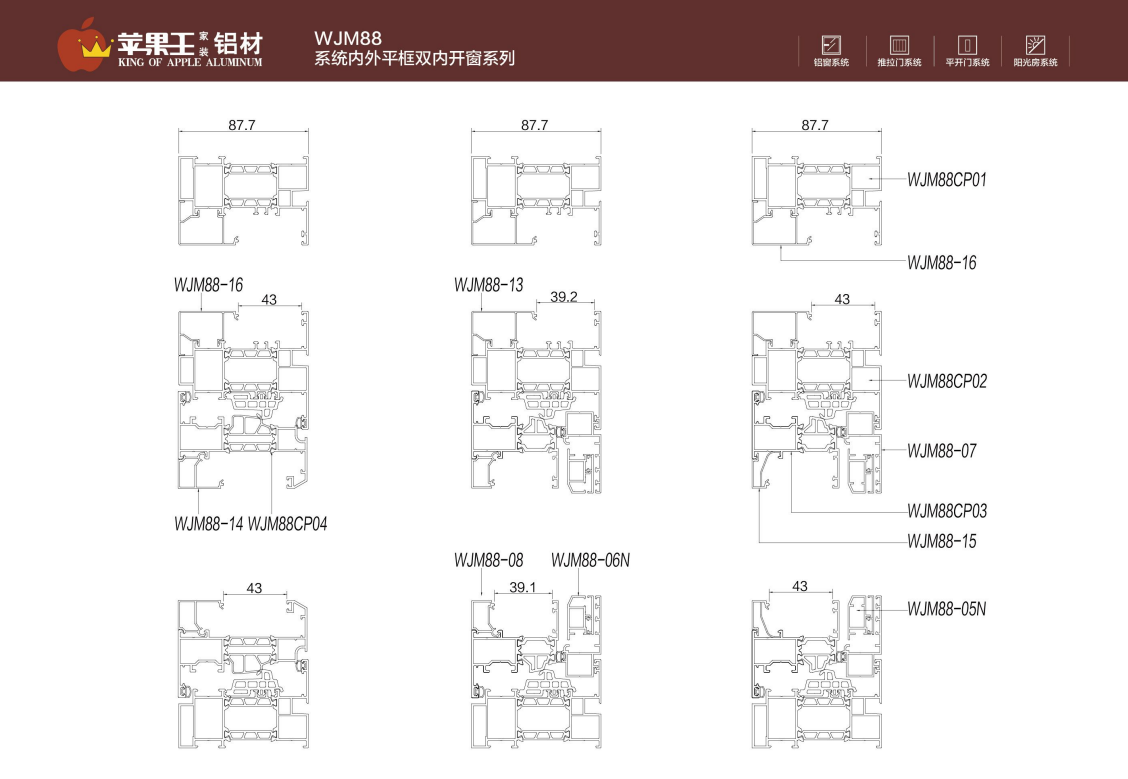 WJM88系統(tǒng)內(nèi)外平框雙內(nèi)開(kāi)窗系列