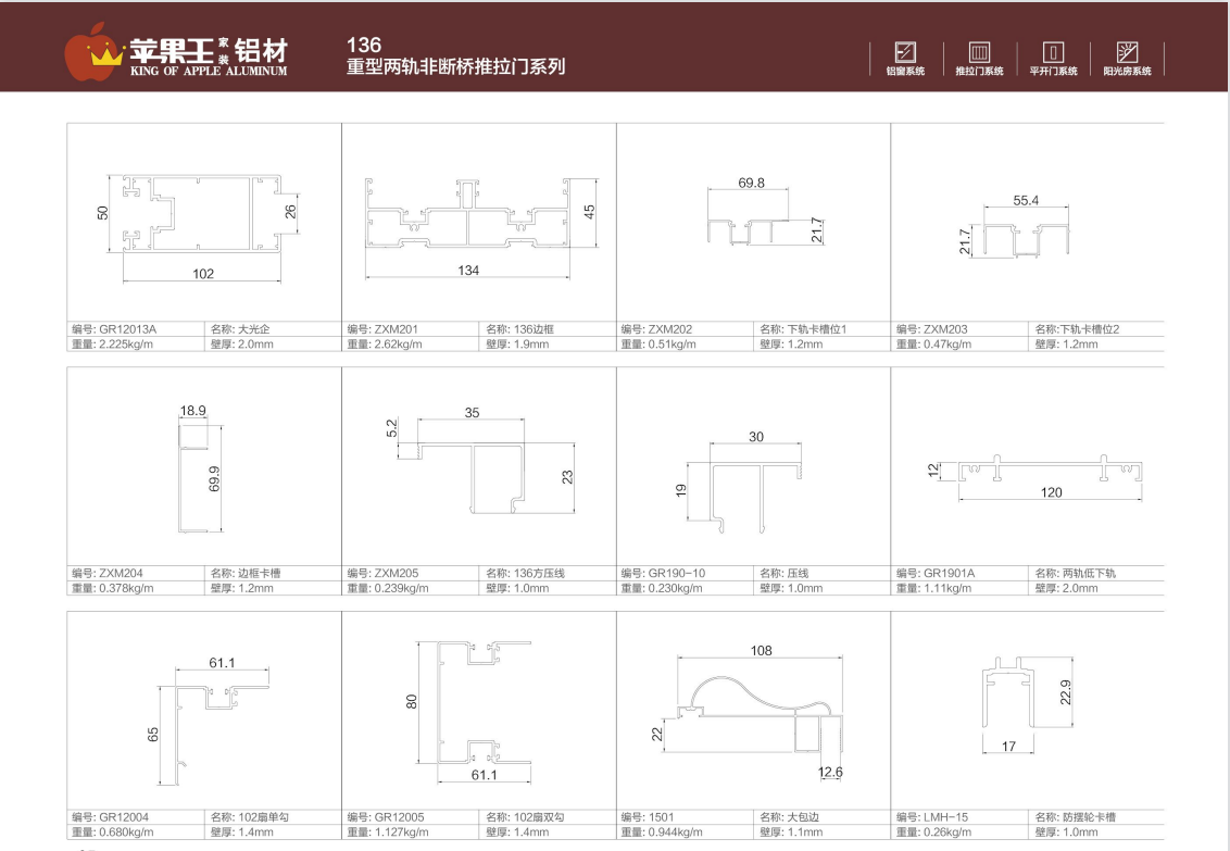 136重型兩軌非斷橋推拉門系列